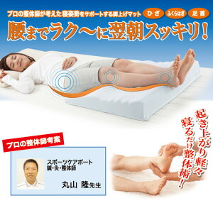 整体師さんの腰まで楽寝マット 洗えるカバー付き プロの整体師が考えた寝姿勢をサポートする脚上げマット プロの整体師が考えた立体的な傾斜で腰の反りを緩め、筋肉がリラックスした理想的な寝姿勢をサポートする高反発の足枕(フットピロー)です。
