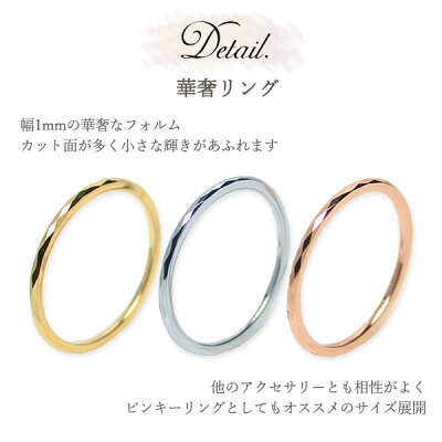 ペアリング タングステン 極細リング 金属アレルギー対応 ダイヤモンドカット 菱形 ピンキーリング メンズ レディース リング ピンキー 指輪 ピンク ローズゴールド イエローゴールド シルバー ステンレス ファランジリング 重ねづけ サージカルステンレス 3号から 細い 華奢