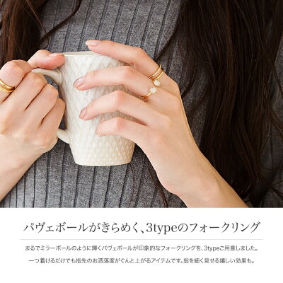 まるでミラーボールのように輝くパヴェボールが印象的なフォークリングを、3typeご用意しました。