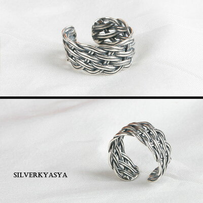 シルバー925 編み込み リング メッシュ 指輪 シルバーリング シンプル 極細 太幅 フリーサイズ リング 人気 silver925ring